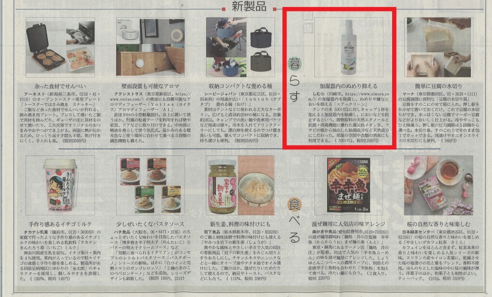 2月3日の日経MJに「エアークリーン」が掲載になりました。